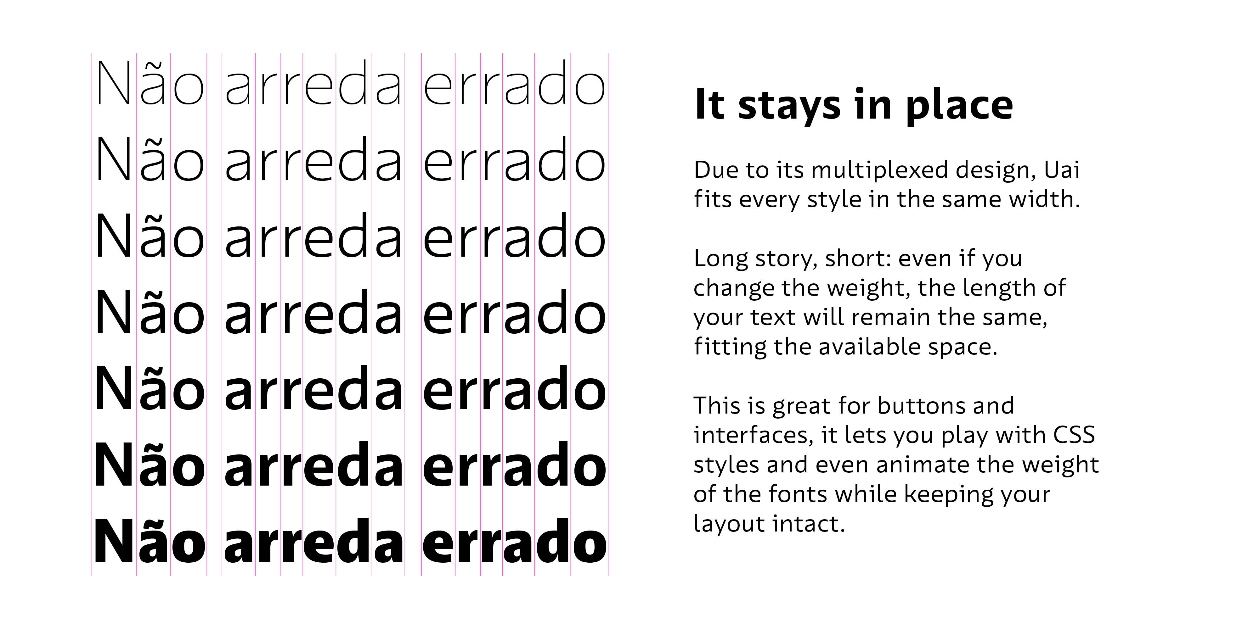 Thin Extralight Light Regular Semibold Bold BlackUai is a sans serif designed to meet the high standards of modern user-interface design, infused with the taste and beauty of Minas Gerais.